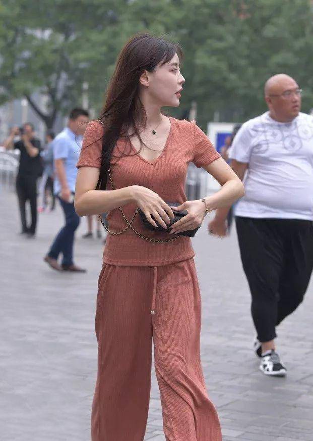 就像是下面这位小姐姐的这身套装穿搭,还是潇洒大气的阔腿裤套装穿搭。简约的纯色系衣身设计,让整体的穿搭看起来浑然一体,从而也更容易凸显女性独有的时尚气质美感。另外,整体的酒红色系修饰,给人的感觉更显成熟稳重的优雅气质,上身更显大方成熟女人味儿。